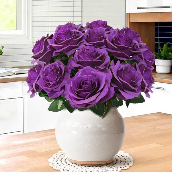 18 in. Deluxe Purple Artificial Queen Rose Flower Stem Bush Bouquet (Set of 2)