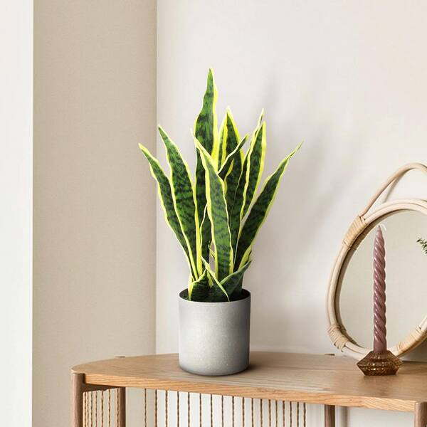 18 in. Green Yellow Sansevieria Artificial Snake Plant in Grey Pot