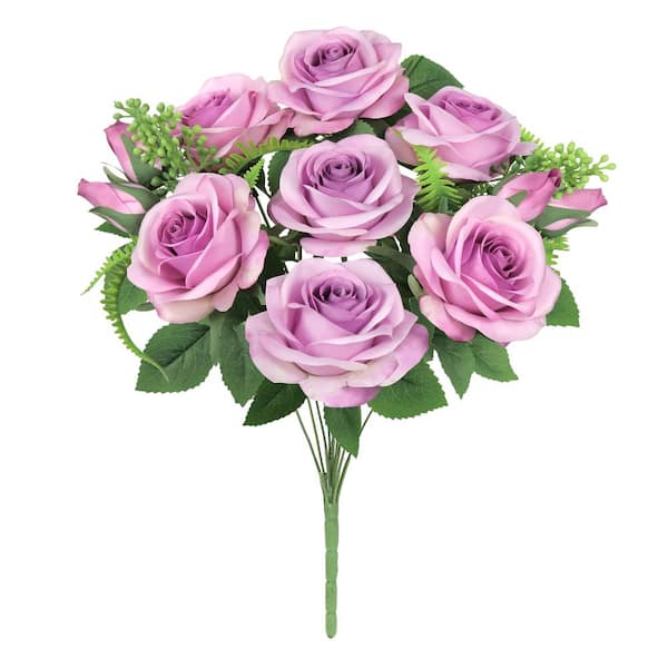 18 in. Lavender Artificial Rose Flower Stem Bush Bouquet (Set of 2)