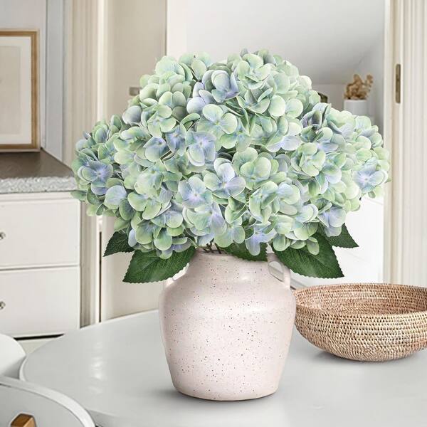 18 in. Mint Blue Natural Touch Artificial Hydrangea Flower Stem Bush Bouquet (Set of 2)