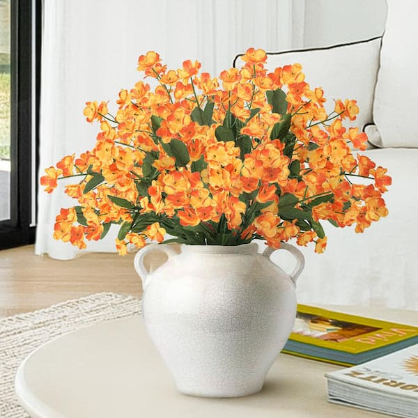 18 in. Orange Artificial Baby's Breath Gypsophila Flower Stem Spray (Set of 12)