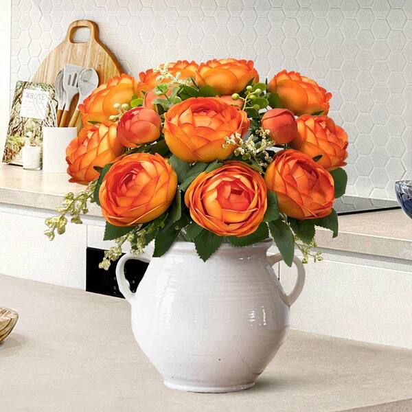 18 in. Orange Artificial Ranunculus Flower Stem Bush Bouquet (Set of 2)