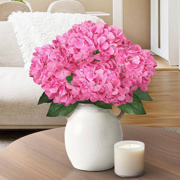 18 in. Pink Fuchsia Natural Touch Artificial Hydrangea Flower Stem Bush Bouquet (Set of 2)