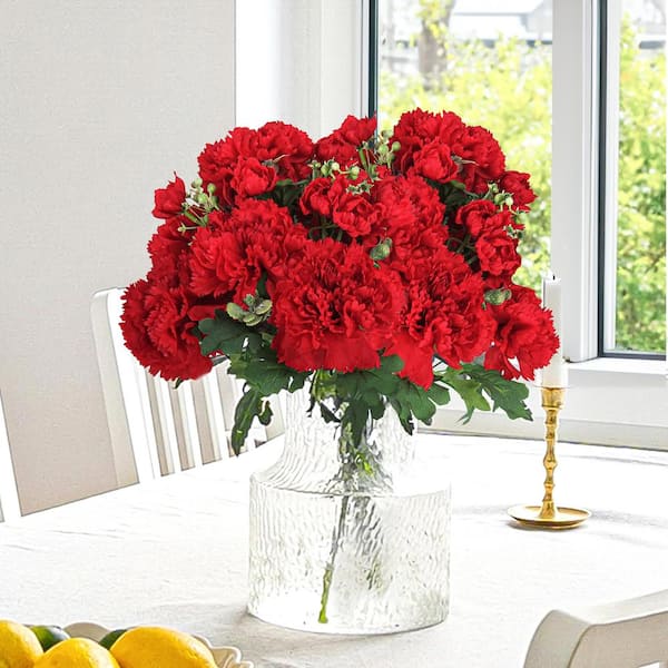 18 in. Red Artificial Carnation Flower Stem Bush Bouquet (Set of 2)
