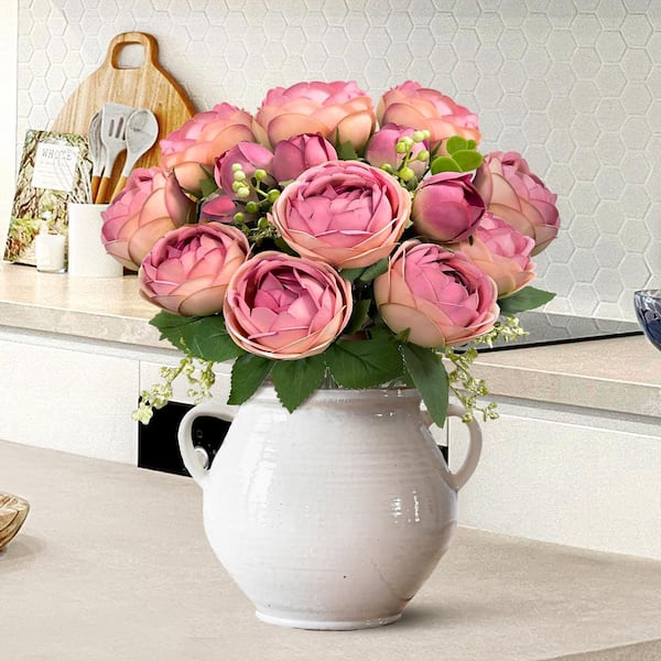 18 in. Rose Pink Artificial Ranunculus Flower Stem Bush Bouquet (Set of 2)