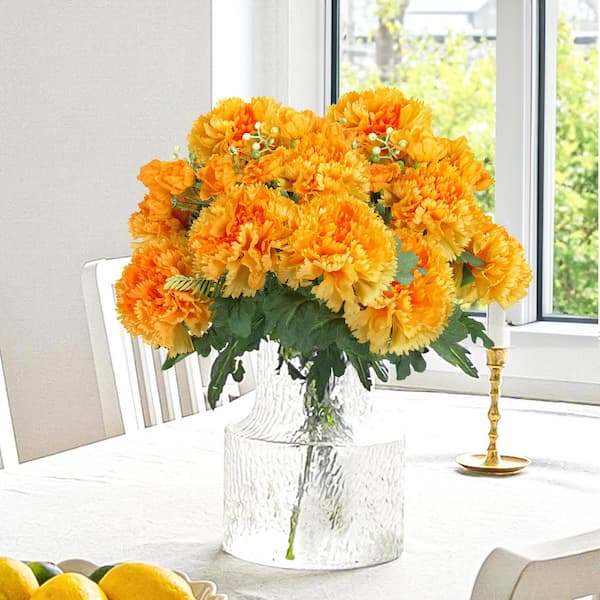 18 in. Yellow Orange Artificial Carnation Flower Stem Bush Bouquet (Set of 2)