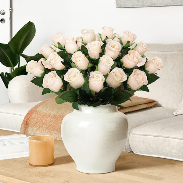 19.5 in. Ivory Artificial Rose Bud Flower Stem Bush Bouquet (Set of 2)