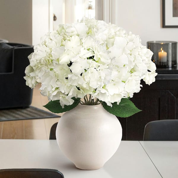 19 in. Cream White Artificial Hydrangea Flower Stem Bush Bouquet (Set of 2)