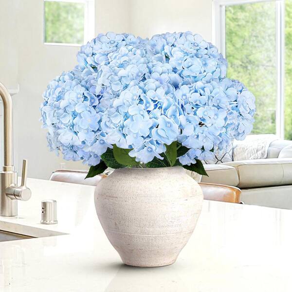 19 in. Deluxe Blue Artificial Hydrangea Flower Stem Bush Bouquet (Set of 2)