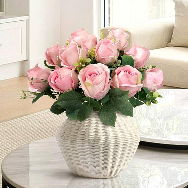 19 in. Pastel Blush Pink Artificial Rose Flower Stem Bush Bouquet (Set of 2)