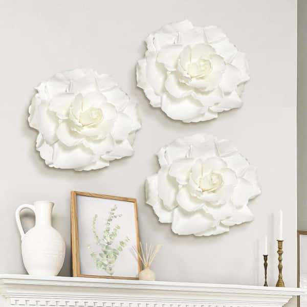 20 in. Large White Artificial Paper Rose Flower Wall Decor Backdrop (Set of 3)