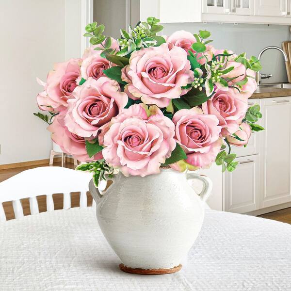 20 in. Light Pink Artificial Sweet Rose Flower Stem Bush Bouquet (Set of 2)