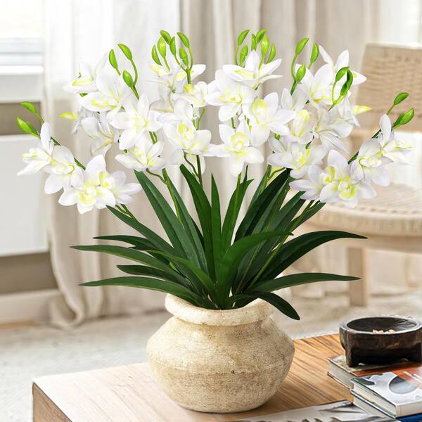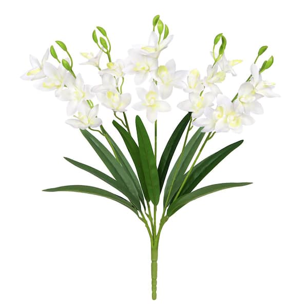 22 in. Natural Touch Cream White Artificial Cymbidium Orchid Flower Stem Bush Bouquet (Set of 2)