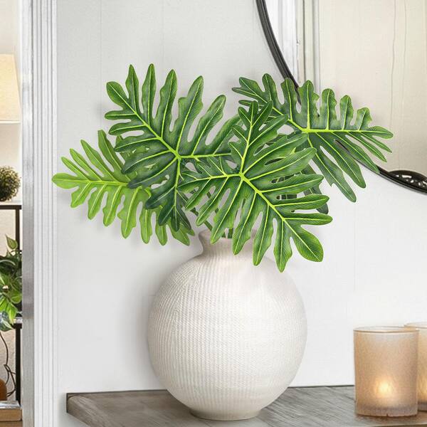 23 in. Real Touch Artificial Selloum Philodendron Leaf Stem Plant Greenery Foliage Spray Branch (Set of 4)