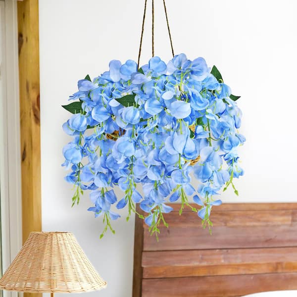 24 in. Blue Artificial Wisteria Flower Stem Hanging Spray Bush (Set of 2)