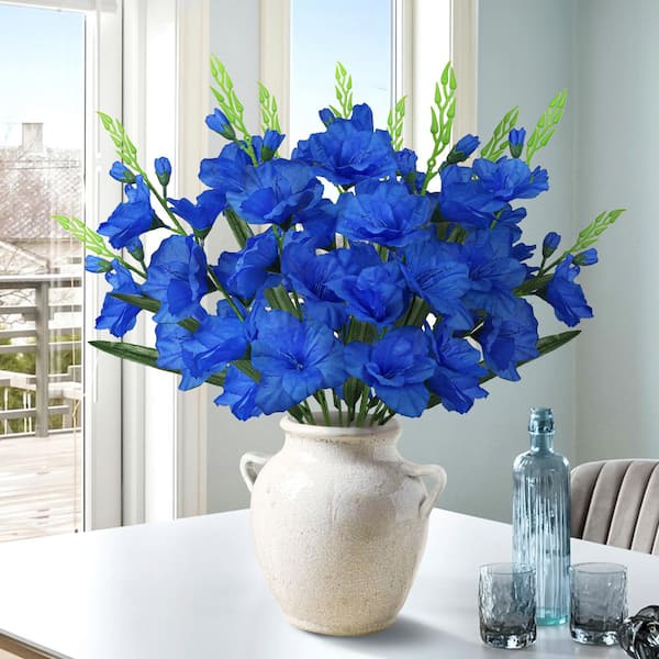24 in. Royal Blue Artificial Gladiolus Flower Stem Bush Bouquet (Set of 2)