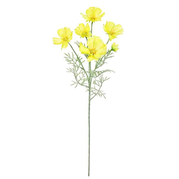 24 in. Yellow Artificial Cosmos Flower Stem Spray (Set-6)