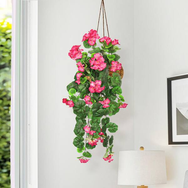30 in. Beauty Pink Artificial Geranium Flower Stem Hanging Spray Bush