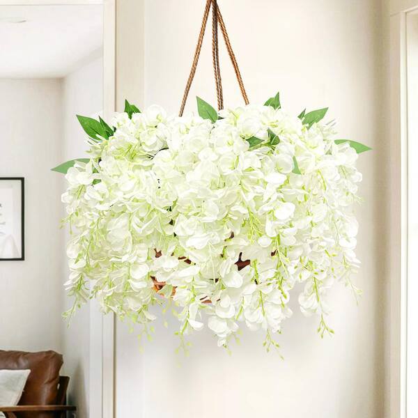 30 in. Cream White Artificial Wisteria Flower Stem Hanging Spray Bush (Set of 2)