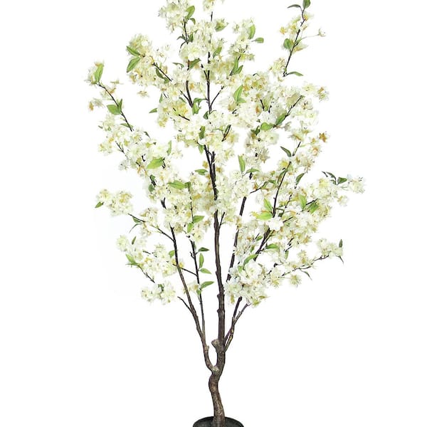 4.5 ft. Cream White Artificial Cherry Blossom Flower Tree in Pot