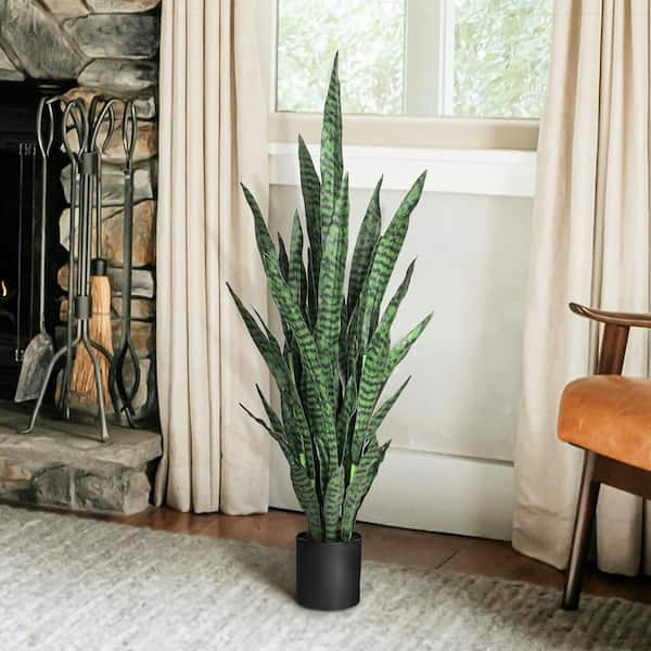 4 ft. Artificial Sansevieria Snake Plant in Black Pot