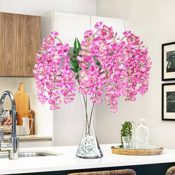 44 in. Fuchsia Artificial Japanese Wisteria Flower Stem Hanging Spray Bush (Set of 3)