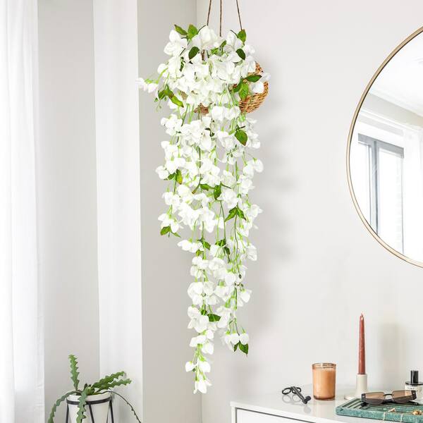 50 in. Cream White Artificial Bougainvillea Flower Stem Hanging Spray Bush