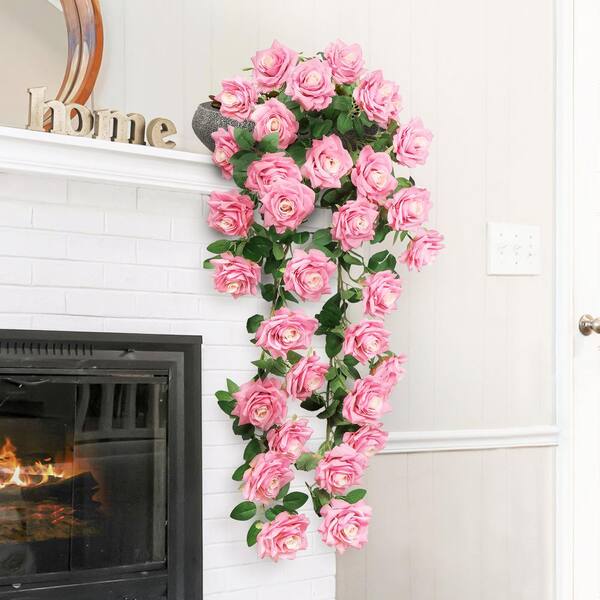50 in. Deluxe Pink Artificial Rose Individual Flower Stem Hanging Spray Bush