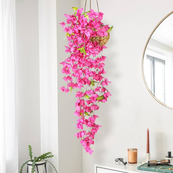 50 in. Magenta Artificial Bougainvillea Flower Stem Hanging Spray Bush
