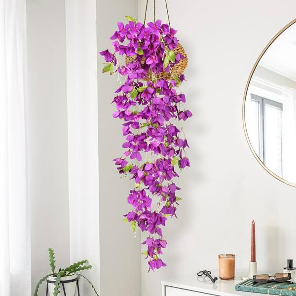 50 in. Purple Artificial Bougainvillea Flower Stem Hanging Spray Bush