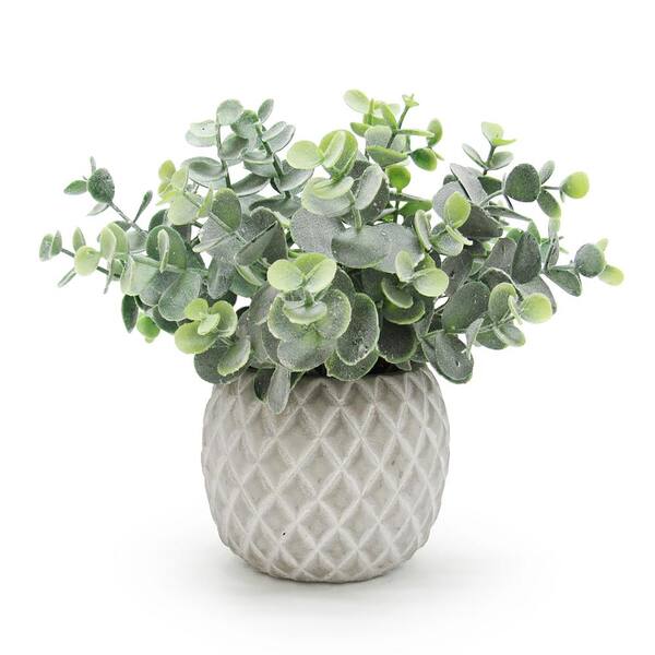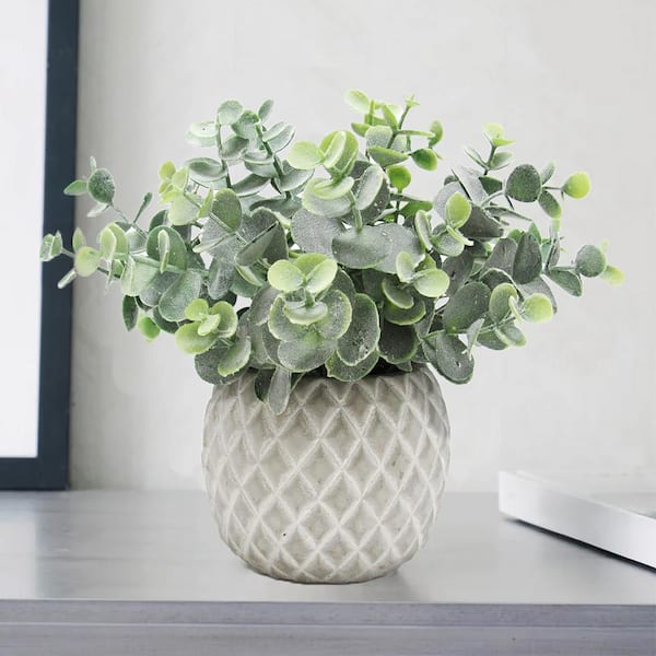 8 in. Artificial Eucalyptus Plant Arrangement in Round Clay Pot