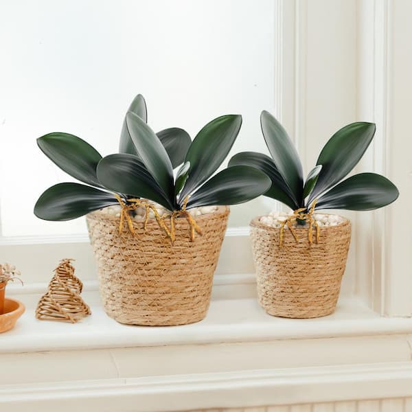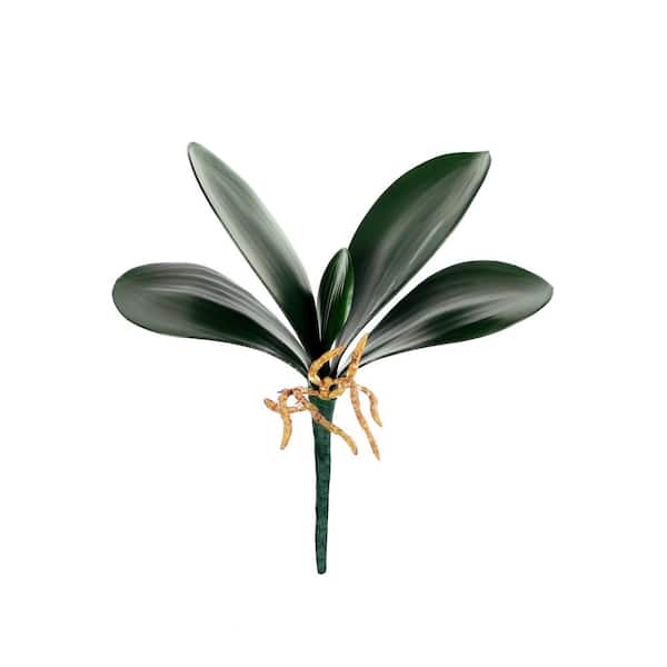 9 in. Artificial Phalaenopsis Orchid Leaf Plant Greenery Foliage Spray Branch with Roots (Set of 3)