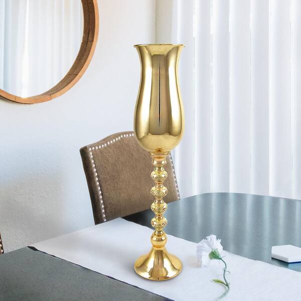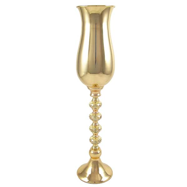 Gold Metal Crystal Gem Mermaid Trumpet Table Flower Vase Decorative Centerpiece 21.5 in.
