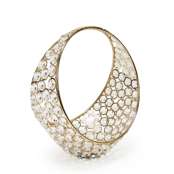 Gold Table Decor Decorative Basket Crystal Accent Piece 9.5 in.