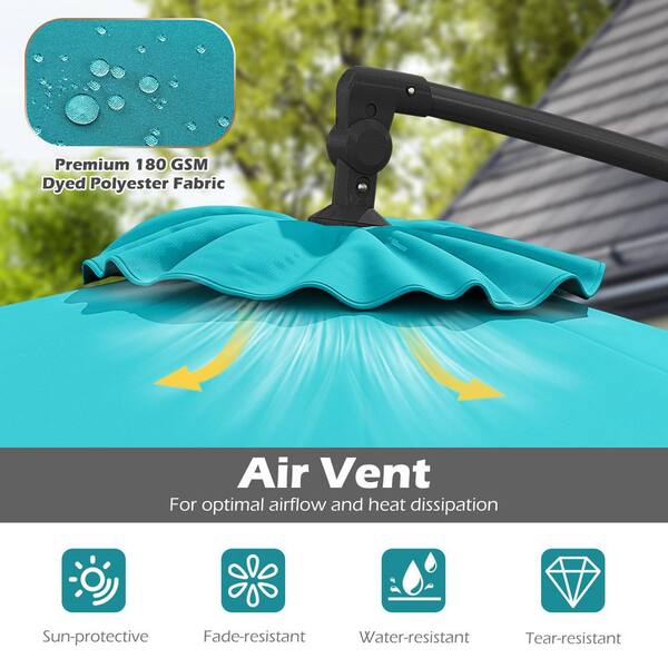 10 ft. Steel Cantilever Offset Solar Hanging Patio Umbrella with Cross Base and 32 LED Lights in Turquoise