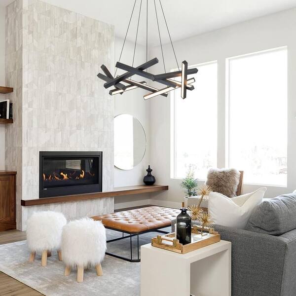 29.92 in. 50-Watt 8-Light Modern Black Sputnik Dimmable Integrated LED Chandelier for Kitchen Island