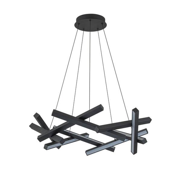 30 in. 10-Light Modern Matte Black Wagon Wheel Integrated LED Chandelier