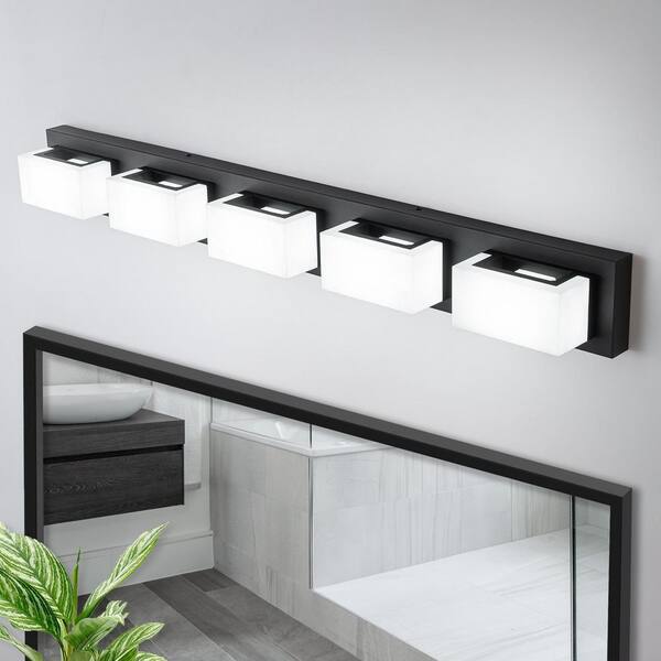 37.99 in. 5-Light Modern Black LED Vanity Light Bar with Acrylic Shades Dimmable 6000K Light