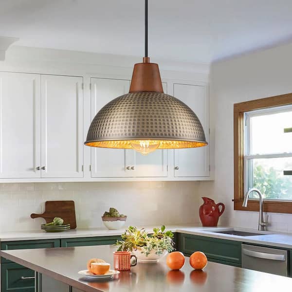 Detroit 1-Light Vintage Antique Brass Hanging Pendant Light with Hammered Dome Shade