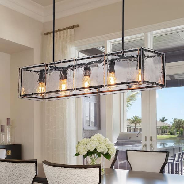 Dvorakova 39.37 in. 5-Light Black Rectangle Dimmable Chandelier with Textured Glass Shade