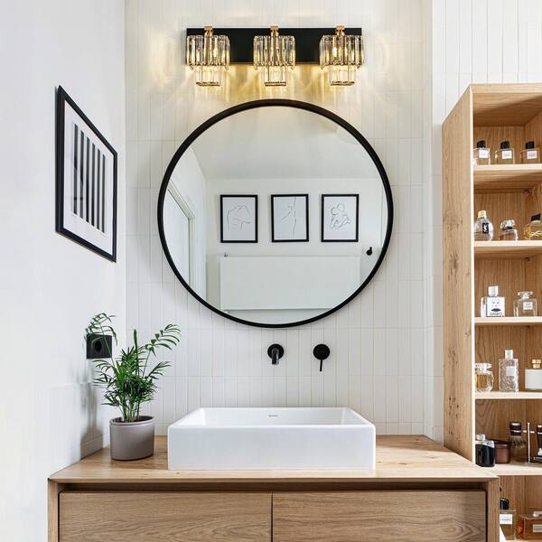 Schonbek 23.62 in. 3-Light 2-Tier Modern Black and Gold Dimmable Bathroom Vanity Light with Crystal Shades
