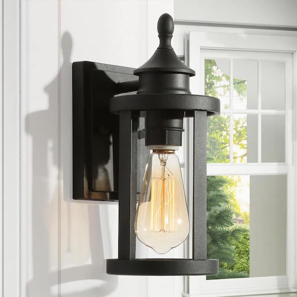 1-Light Matte Black Hardwired Outdoor Wall Lantern Sconce with Clear Glass Shade