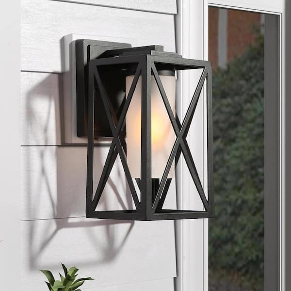 1-Light Modern Farmhouse Black Outdoor Wall Lantern Sconce Decorative Coach Light for Patio and Porch with Frosted Glass