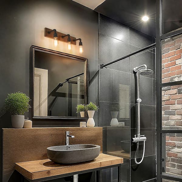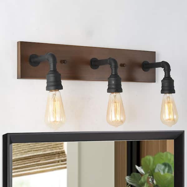 22.2 in. 3-Light Brushed Black and Bronze Bathroom Rectangle Vanity Light Rust-Resistant Industrial Pipe Wall Sconce