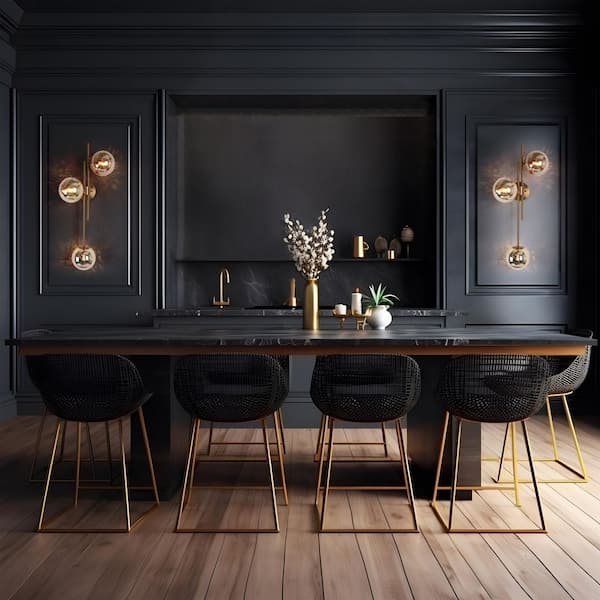 30 in. 3-Light Plated Brass Mercury Glass Orb Vanity Light, Modern Bathroom Horizontal/Vertical Mount Sconce Wallchiere