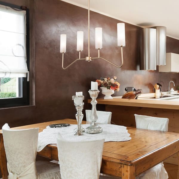 32 in. Modern Chandelier 4-Light Brass Gold Transitional Linear Chandelier with White Frosted Glass Shades