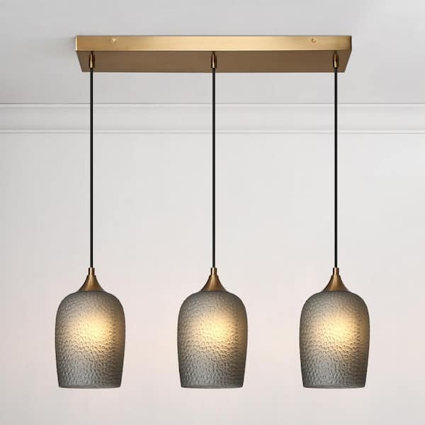 Apphia 3-Light Plating Brass Island Linear Chandelier with Textured and Colored Glass Shades and No Bulb Included