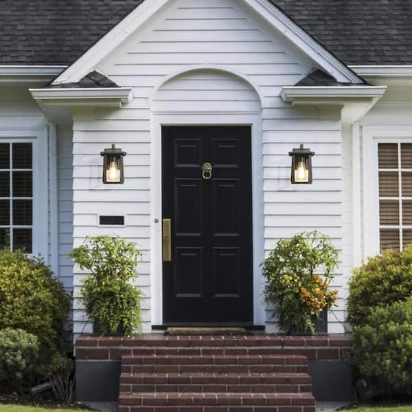 Black Modern Outdoor Wall Light 1-Light Hardwired Anti-Rust Entryway Patio Wall Lantern With Clear Glass Shade (2-pack)