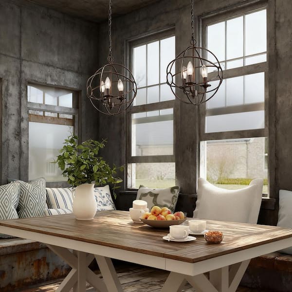 Bronze Chandelier Farmhouse Candlestick 3-Light Globe Kitchen Island Pendant High Ceiling Light