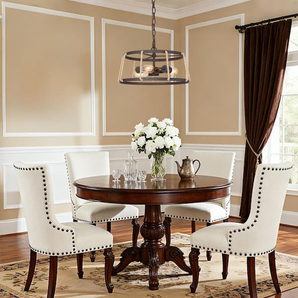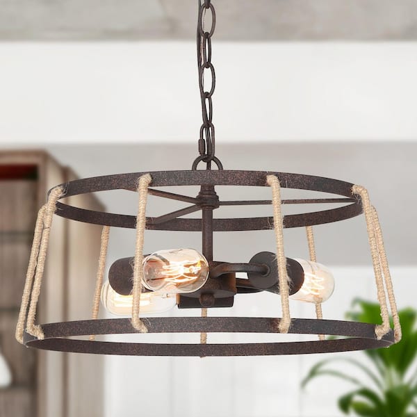 Bronze Farmhouse Drum 3-Light Chandelier Vintage Cage Island Pendant Chandelier with Hemp Cord